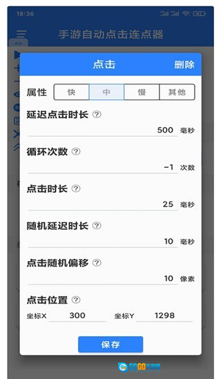 3、设置点击的时间以及延迟。