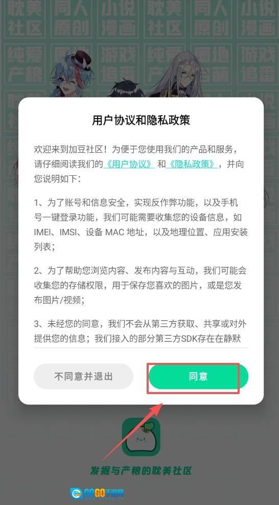 1、首先在本站并安装加豆漫画,进入并同意相关协议。