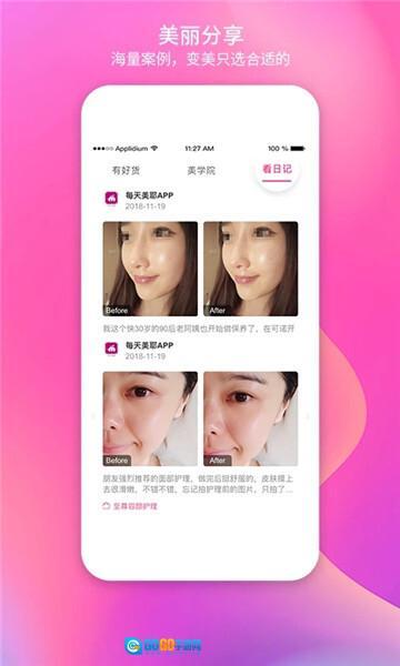 在【美丽分享】板块,你可以浏览其他用户的变美案例(包含前后对比),从中参考适合自己的美容护理方式。