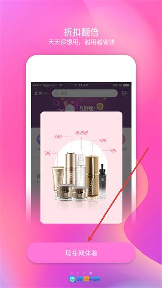 4、在折扣活动页面,能查看美妆产品的优惠折扣信息,点击【现在就体验】按钮即可进入商品选购环节。