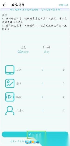 4. 点击【开始接收】,开始接收旧机传输的数据。