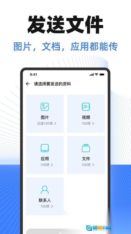 2. 支持各类文件的传输,涵盖照片、视频、文档以及应用程序等多种类型。