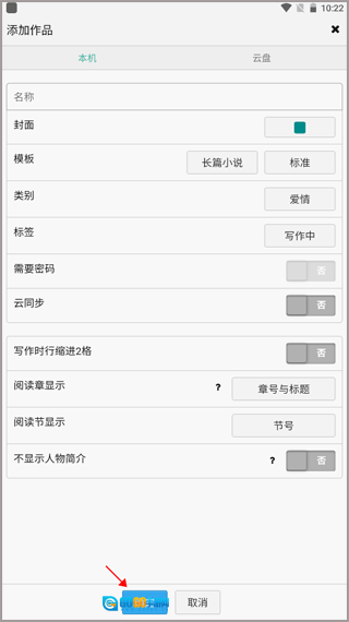 2、接着对小说作品的名称、封面、标签等信息进行设置,所有设置都完成后,点击确认按钮就可以了。