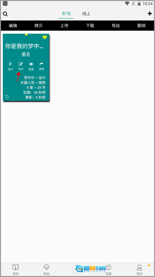 3、最后就能在首页看到之前制作好的小说模板,选择并点击“写作”按钮,即可开始进行创作。