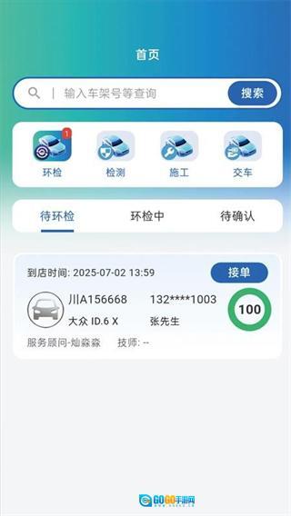 3. 在首页即可看到环检、检测、施工等功能;