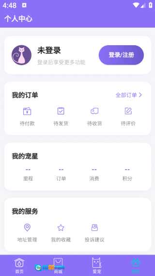在个人中心里,你能够查看订单、我的宠物、我的服务等各类功能。