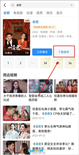 2、搜索到该节目后,点击【缓存】