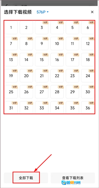 3、勾选需要缓存的剧集,或是点击【全部】