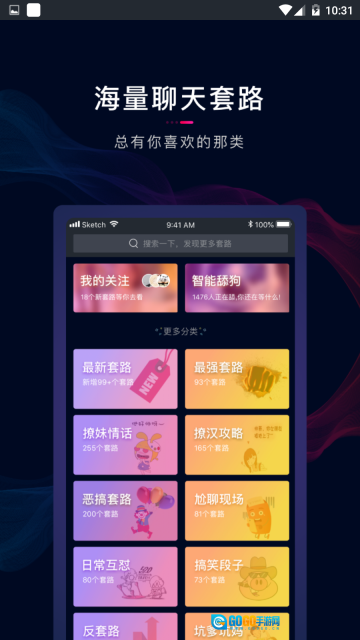 套路王是一款聊天软件,不仅提供海量套路话术供用户免费查看,还设有实时套路教学功能。平台上汇集了好玩、搞笑、文艺等多种风格的对话内容,各类有趣的套路对话随时都能浏览。此外,软件支持原创套路创作,用户可以轻松发布自己的作品,流程简单便捷,尽情展现才华与创意,说不定下一个受欢迎的段子手就是你。