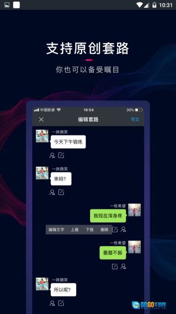 和亲朋好友一起玩套路的活动,适合情侣、亲人、闺蜜、好基友等各种关系的聊天整蛊玩法,参与活动还能获得奖励。