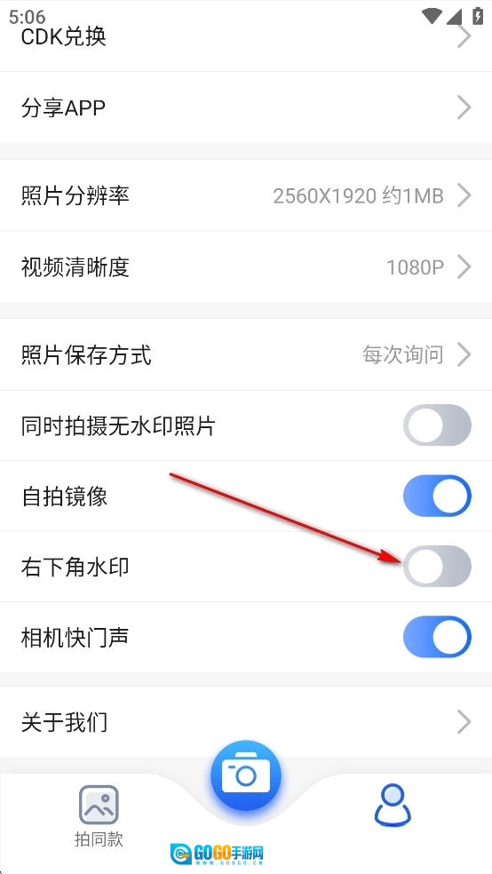 找到【右下角水印】,把它后面的开关关闭就能去除自带水印啦。