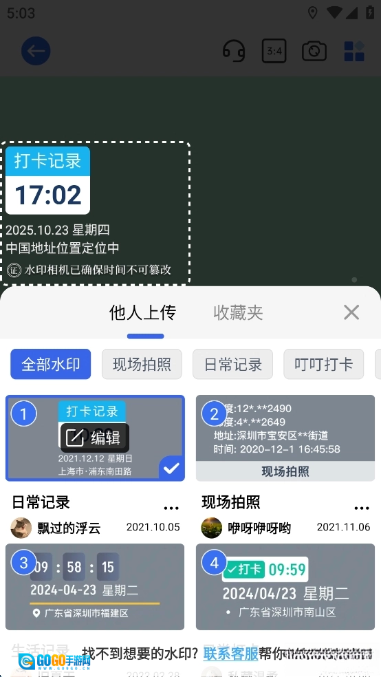 水印添加功能:用户既能在拍照过程中实时添加水印,也能在拍摄完成后进行水印补充;水印内容支持自定义设置,涵盖文字、图片等多种形式,便于用户开展打卡、标记等各类操作。