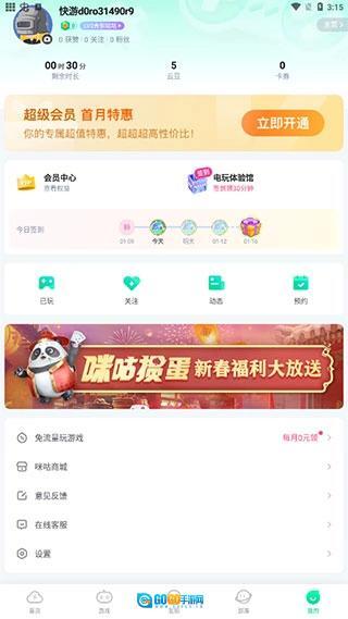 1、登入咪咕快游。