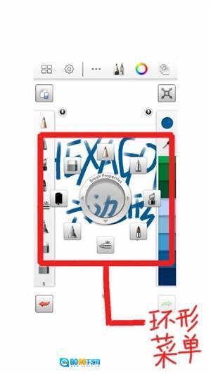 蓝框标识看起来不够醒目,这次换成红色。需要留意的是,灰色环形以及它周边的一圈笔刷都属于环形菜单的范畴。