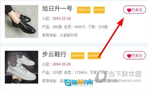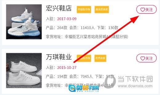 1、打开爱搜鞋的“商家”页面,找到对应商家后点击其右侧的“关注”按钮。