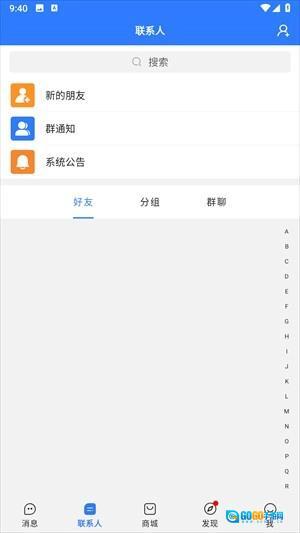 2、点击联系人就能添加好友;