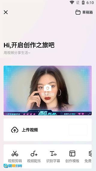 4、在发视频页面,你可以使用自行创作、视频剪辑、视频配乐、识别字幕、创作模板等功能。