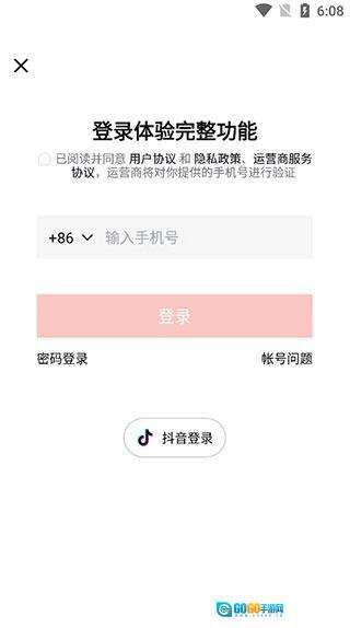 1、登录功能体验全面,支持通过手机号、抖音号两种方式登录;