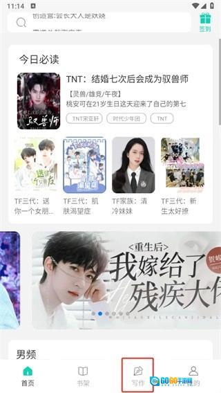 1、打开软件后,点击"写作"按钮。