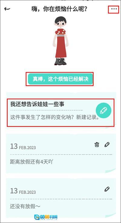 ●如果你突然不想记录这个烦恼了,你可以点击右上角的图标,删除这个烦恼。