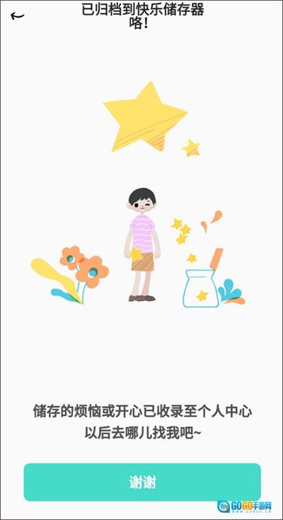 ●点击【把这个快乐储存起来】,你还可以继续选择,包括:说说这个开心是怎么储存的。当你的快乐储存好了,解忧娃娃就会拥有一个装满快乐的星星罐。