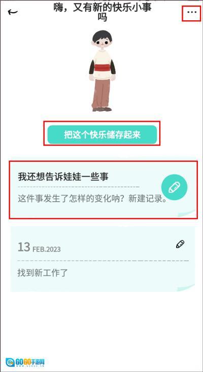 4、在【hy】页面中,你可以选择任意一个开心的事,点击对应的解忧娃娃,会看到两个选项,包括:【把这个快乐储存起来】、【我还想告诉娃娃一些事】。