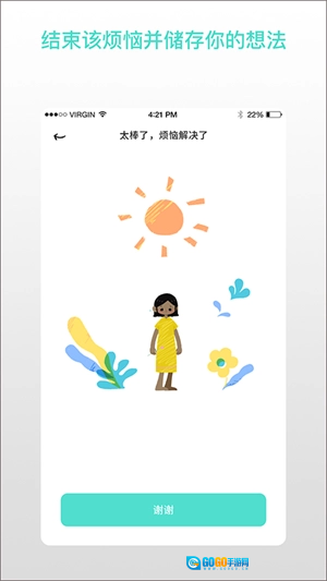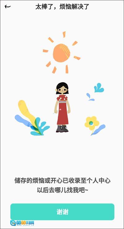 ●点击【这个烦恼已经解决】,你还可以继续选择,包括:结果是否有你预期的糟糕、说说这个烦恼是怎么结束的。当你的烦恼已经解决,解忧娃娃就会拥有一个灿烂的小太阳。