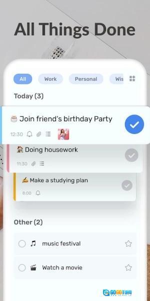 ToDoList每日计划清单是一款事项计划清单软件,帮助用户管理时间和计划的软件。能创建如购物清单、作业清单等多样列表,还可在列表间灵活移动任务、添加图标,增添趣味性与便捷性,同时集成时间管理功能,助助用户统筹工作与生活时间。