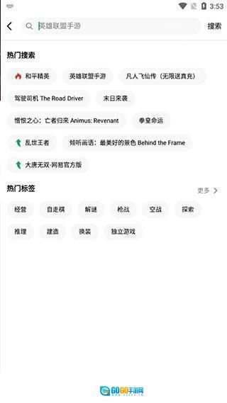 3、你也可以点击首页顶部的搜索框,然后输入你想要找的游戏名字或者游戏标签;