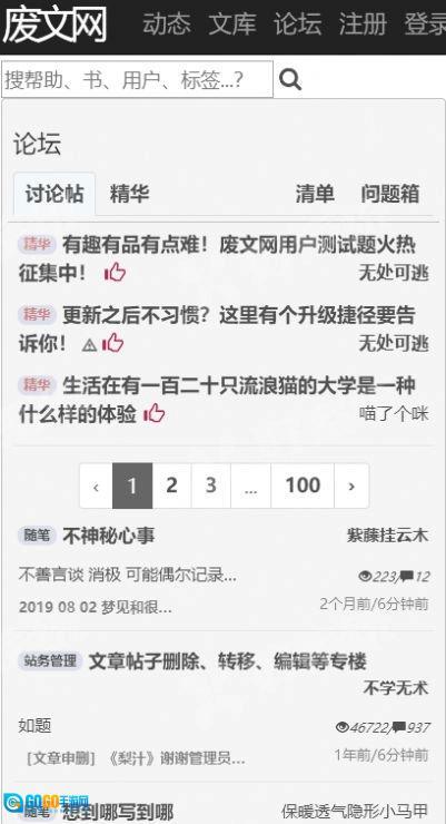2、在废文网上,用户可以通过发表自己的文学作品来展示自己的才华和文学素养,并且还可以参加各种活动和比赛,获得丰厚奖励和粉丝的支持。同时,废文网也为读者提供了便利,让读者能够方便地搜索感兴趣的小说、追更最新的作品更新等。总之,废文网是一个非常优秀的文学分享平台,为用户提供了积极的文艺交流氛围和良好的文学阅读体验。