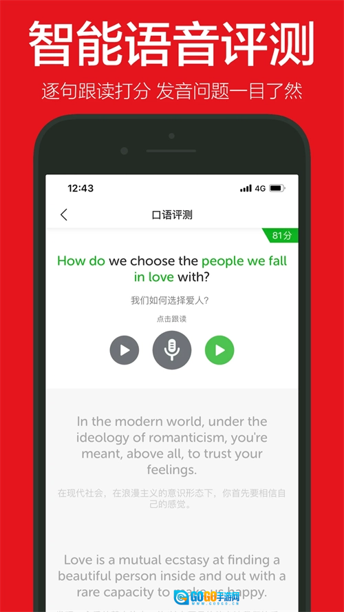 逐句跟读打分,发音问题一目了然。