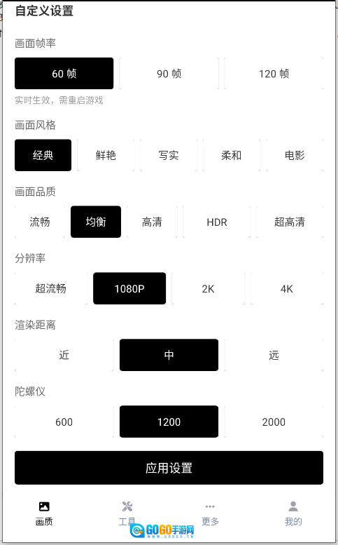 2、还能够自定义设置画质、帧率等参数,设置完成后点击应用设置即可。