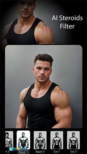 2、上传好对应的照片以后,选择底部的增肌滤镜,每一个生成的效果不同。