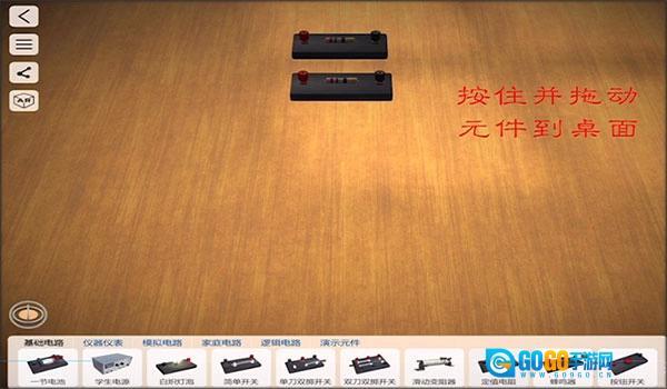 2、在下方工具栏中,可以选择自己需要的电学仪器,按住并拖动元件到桌面。