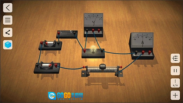 3、点击需要的仪器,将其拖拽到桌面上,并设置好开关和导线等辅助工具后,就可以进行电路模拟实验了。