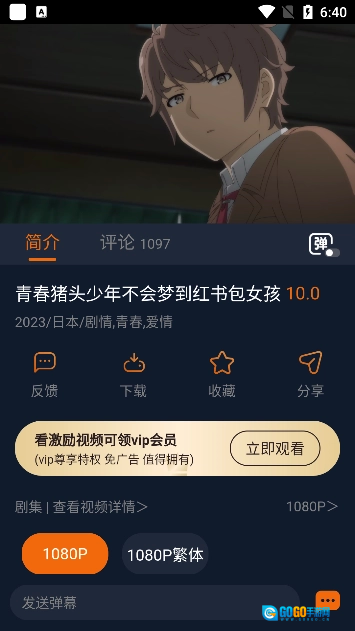 1、第一步是打开囧次元投屏版,找到想要投屏的视频并点击进入;
