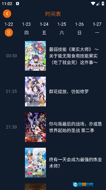 4、软件还具备时间表功能,能让用户清晰了解各类动漫的更新时间。