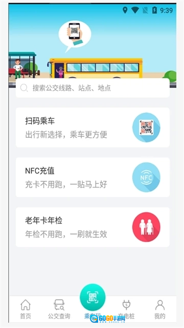 本应用提供软件内扫码乘车、充电桩查询及充电服务、实时公交查询、老年卡年检等功能。