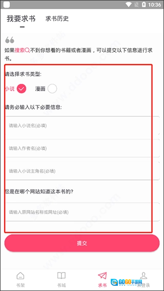 4、并且,要是你找不到想看的小说或漫画,还能在线发起求书请求,功能相当实用。