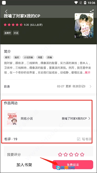 5、另外,看到你感兴趣的书籍,即可点击进入其详情页面查看具体内容,在这里不仅能免费阅读,还能了解到作品的周边信息。