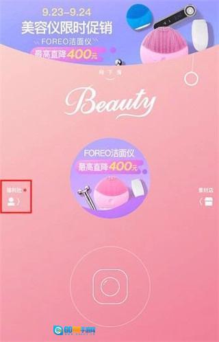1、打开美人相机,在主界面向右滑动,然后点击左侧菜单里的“福利社”