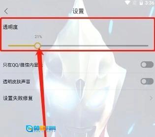 这时候我们就进入了“设置”功能,用户在上方也能看到“透明度”选项,通过调节这个选项可以改变透明效果——数值越大,壁纸显示得越清晰,但字体就越不容易看清;数值越小,则情况相反。