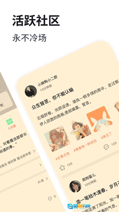 【欢乐万花筒,互动兴趣】这里不仅有社交吐槽和评论功能,还有社交聊天功能,让阅读更贴心,和作者更贴近。我们的社区可是最欢快的地方哦,有着奇葩管理员和搞笑作者,还有超多有趣的话题,绝对能帮助你摆脱不开心!而且还可以弹幕吐槽,有梗就有爱啊!作者们可绝不会咕咕舍弃大家,他们就像传说中的老白一样,随时准备与大家交流互动!