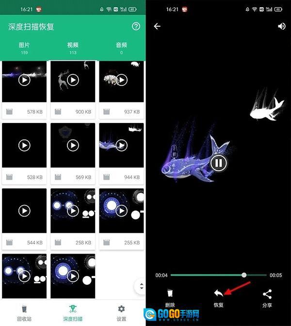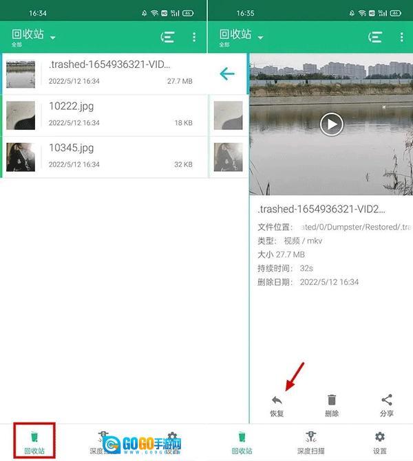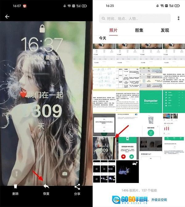 3、比如,在图片里面,我们可以找到之前删除过的一些图片。如果找到自己感兴趣的图片,可以点击进入查看,然后点击下方的「恢复」即可,恢复的图片会保存到手机相册中,进入相册即可找到,如图所示。