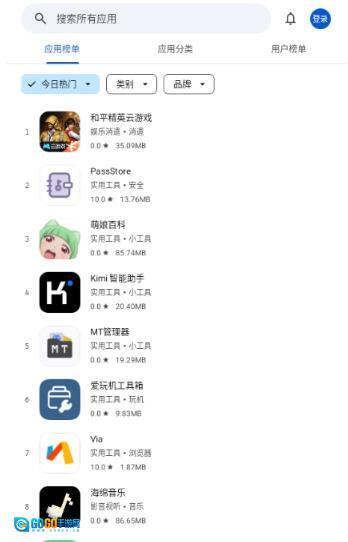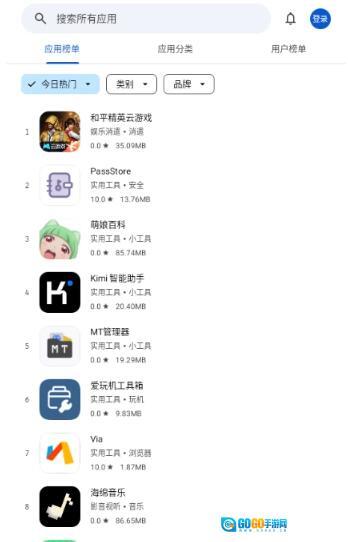 4、通过排行可以看到每天的热门软件内容