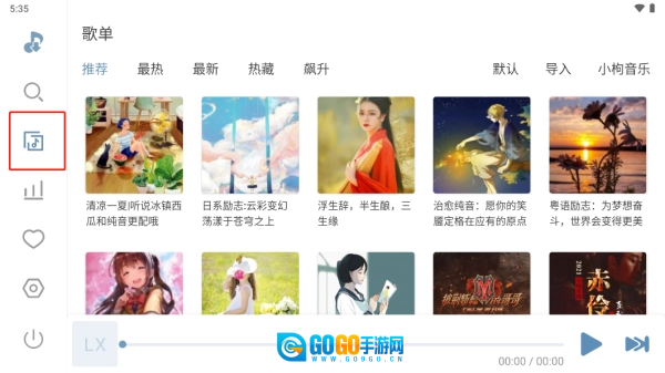 3、继续点击左侧红框中的图标,会出现歌单分类,可按自己的喜好进行查找收藏