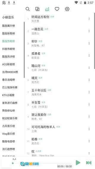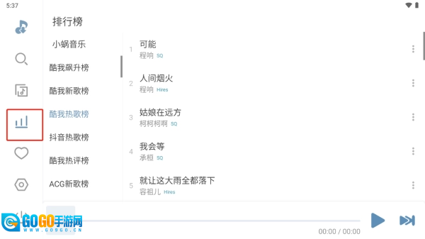 4、最后在歌曲库空空如也的时候,也可以尝试查看排行榜,各大热门音乐播放器的歌曲排行一目了然
