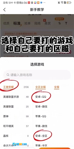 2、如下图所示:点击选择自己要打的游戏和自己要打的区服