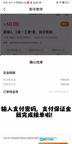 5、最后根据操作流程提交保证金,即可成功接单