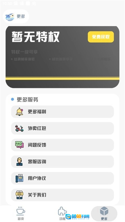 1、进入“更多”页面后,点击页面上方的“免费获取”按钮。